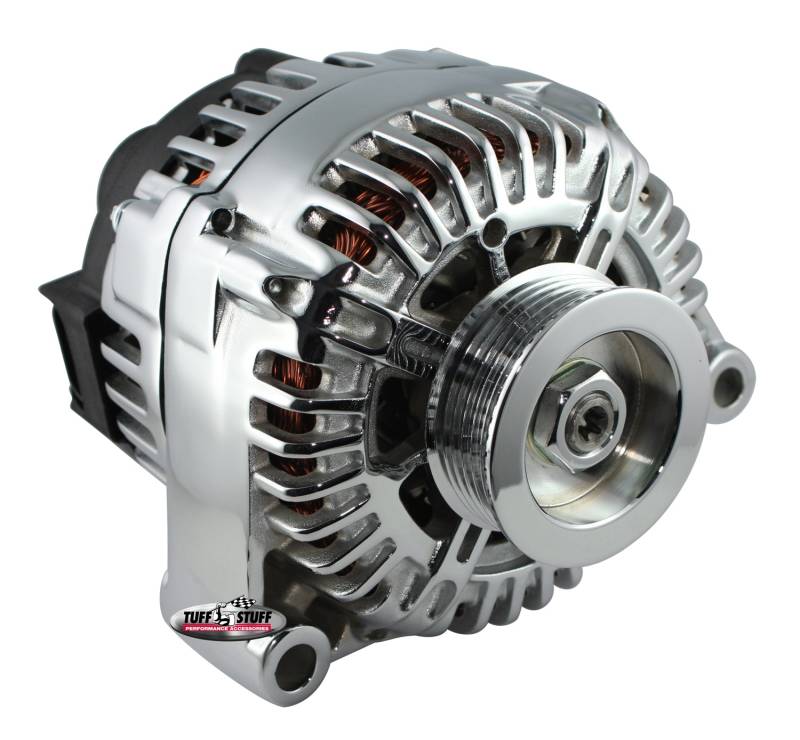 All Tuff Stuff alternators are hand built in Cleveland, Ohio and are tested to meet or exceed OEM specifications. All Tuff Stuff alternators are made from 100% new components and carry a one year limited warranty. Tuff Stuff has alternator applications for virtually all muscle cars, hot rods, customs and light trucks in just about every finish imaginable. Available in chrome plated, polished aluminum, powder coated and plain as cast finishes. All alternators are for 12 volt, negative ground systems, except where noted.