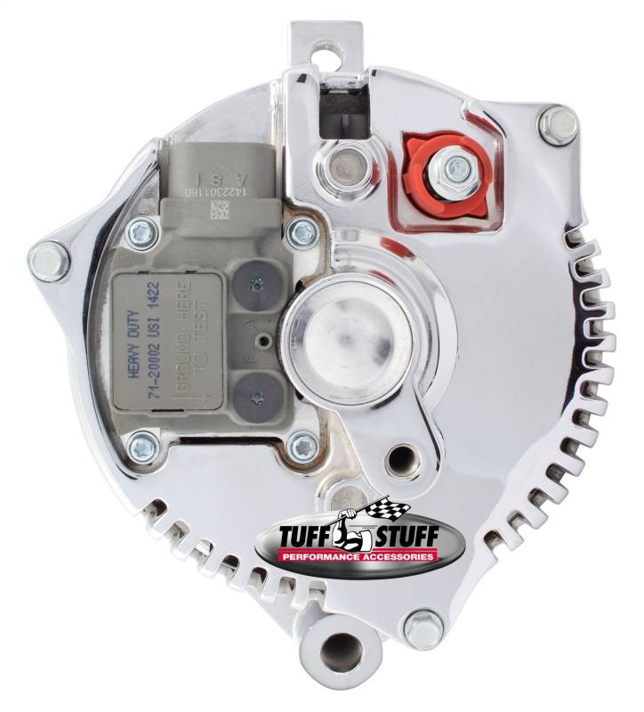 All Tuff Stuff alternators are hand built in Cleveland, Ohio and are tested to meet or exceed OEM specifications. All Tuff Stuff alternators are made from 100% new components and carry a one year limited warranty. Tuff Stuff has alternator applications for virtually all muscle cars, hot rods, customs and light trucks in just about every finish imaginable. Available in chrome plated, polished aluminum, powder coated and plain as cast finishes. All alternators are for 12 volt, negative ground systems, except where noted.
