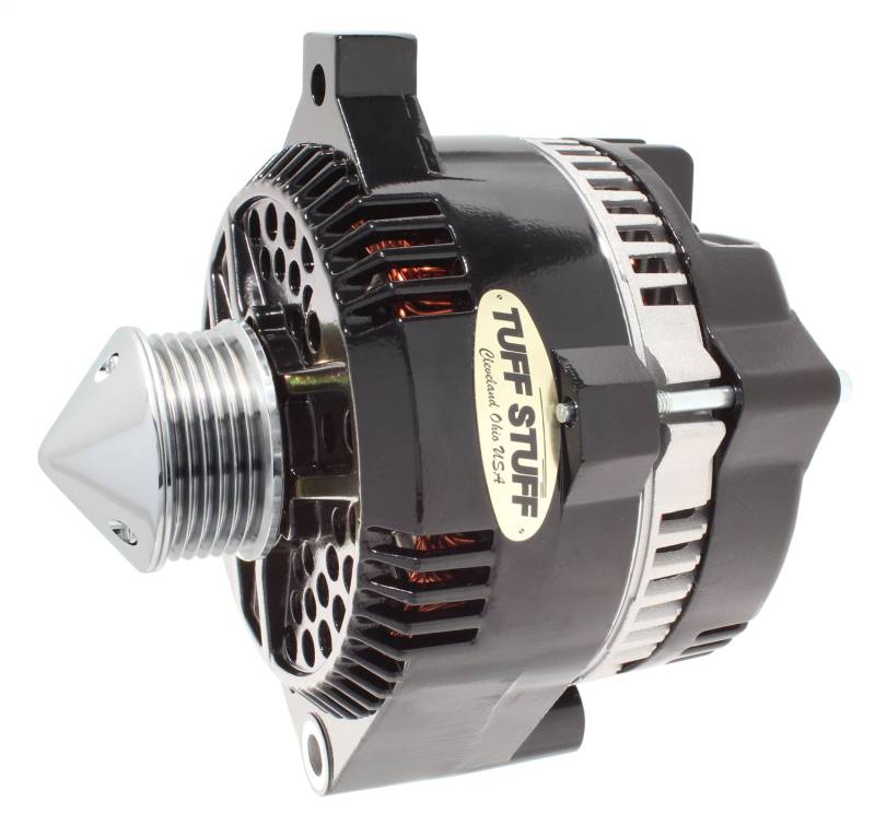 All Tuff Stuff alternators are hand built in Cleveland, Ohio and are tested to meet or exceed OEM specifications. All Tuff Stuff alternators are made from 100% new components and carry a one year limited warranty. Tuff Stuff has alternator applications for virtually all muscle cars, hot rods, customs and light trucks in just about every finish imaginable. Available in chrome plated, polished aluminum, powder coated and plain as cast finishes. All alternators are for 12 volt, negative ground systems, except where noted.