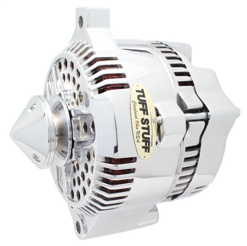 All Tuff Stuff alternators are hand built in Cleveland, Ohio and are tested to meet or exceed OEM specifications. All Tuff Stuff alternators are made from 100% new components and carry a one year limited warranty. Tuff Stuff has alternator applications for virtually all muscle cars, hot rods, customs and light trucks in just about every finish imaginable. Available in chrome plated, polished aluminum, powder coated and plain as cast finishes. All alternators are for 12 volt, negative ground systems, except where noted.