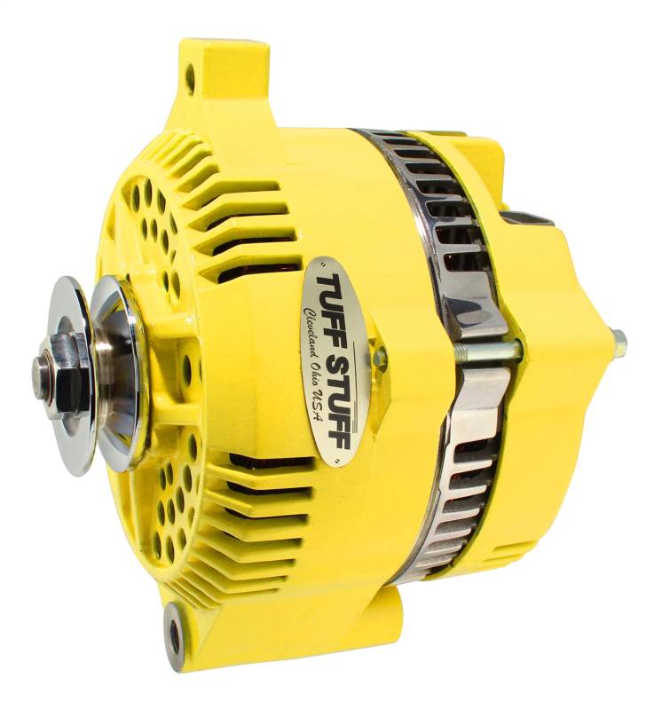 All Tuff Stuff alternators are hand built in Cleveland, Ohio and are tested to meet or exceed OEM specifications. All Tuff Stuff alternators are made from 100% new components and carry a one year limited warranty. Tuff Stuff has alternator applications for virtually all muscle cars, hot rods, customs and light trucks in just about every finish imaginable. Available in chrome plated, polished aluminum, powder coated and plain as cast finishes. All alternators are for 12 volt, negative ground systems, except where noted.