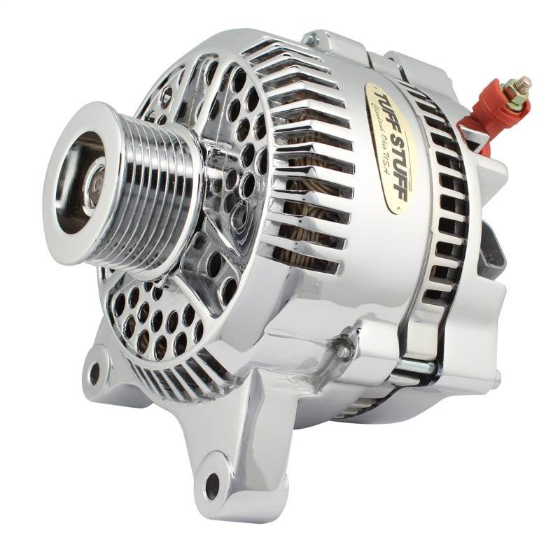 All Tuff Stuff alternators are hand built in Cleveland, Ohio and are tested to meet or exceed OEM specifications. All Tuff Stuff alternators are made from 100% new components and carry a one year limited warranty. Tuff Stuff has alternator applications for virtually all muscle cars, hot rods, customs and light trucks in just about every finish imaginable. Available in chrome plated, polished aluminum, powder coated and plain as cast finishes. All alternators are for 12 volt, negative ground systems, except where noted.