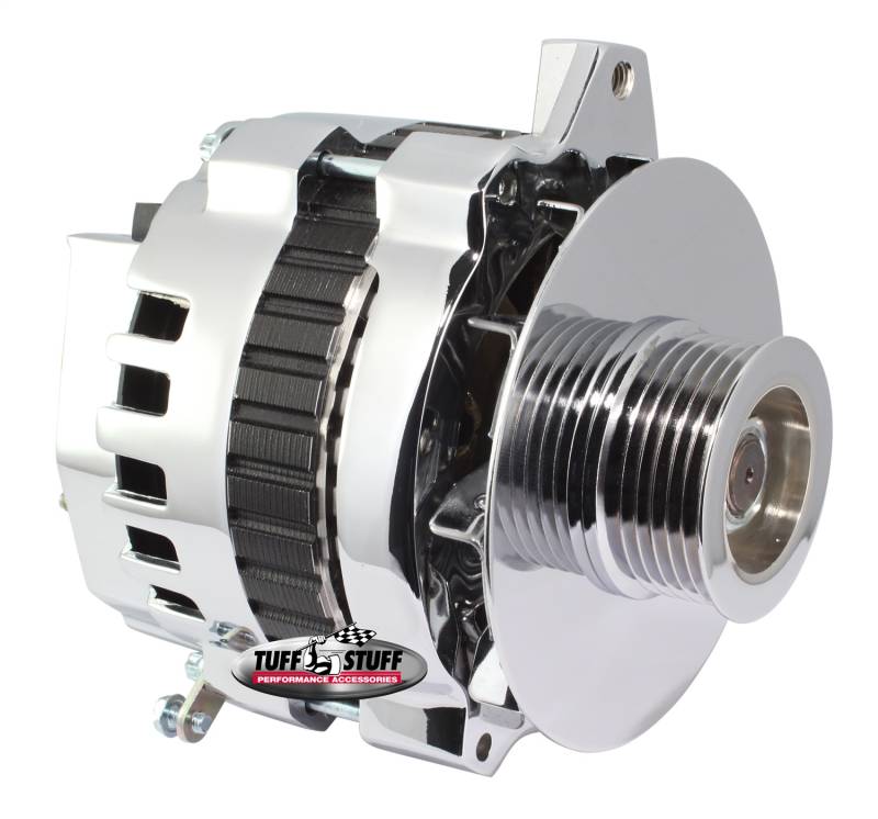 All Tuff Stuff alternators are hand built in Cleveland, Ohio and are tested to meet or exceed OEM specifications. All Tuff Stuff alternators are made from 100% new components and carry a one year limited warranty. Tuff Stuff has alternator applications for virtually all muscle cars, hot rods, customs and light trucks in just about every finish imaginable. Available in chrome plated, polished aluminum, powder coated and plain as cast finishes. All alternators are for 12 volt, negative ground systems, except where noted.