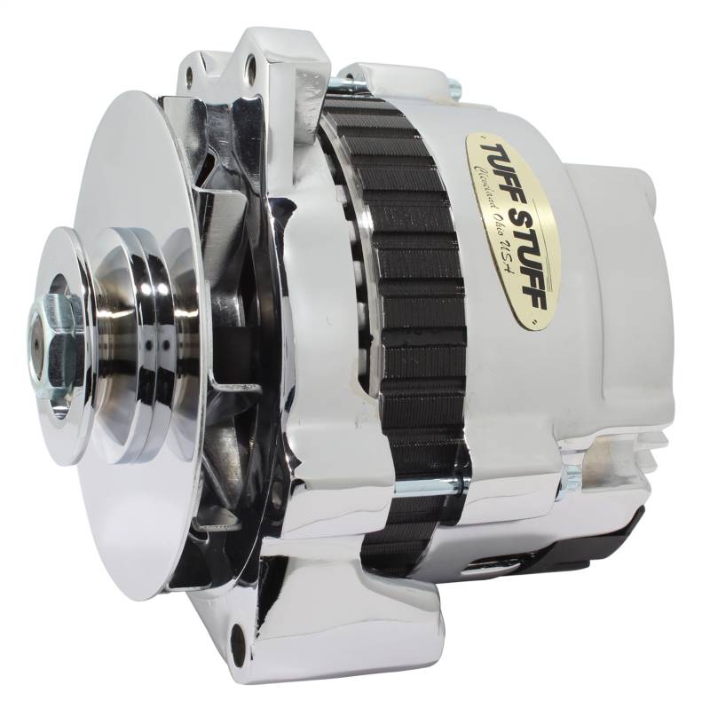 All Tuff Stuff alternators are hand built in Cleveland, Ohio and are tested to meet or exceed OEM specifications. All Tuff Stuff alternators are made from 100% new components and carry a one year limited warranty. Tuff Stuff has alternator applications for virtually all muscle cars, hot rods, customs and light trucks in just about every finish imaginable. Available in chrome plated, polished aluminum, powder coated and plain as cast finishes. All alternators are for 12 volt, negative ground systems, except where noted.