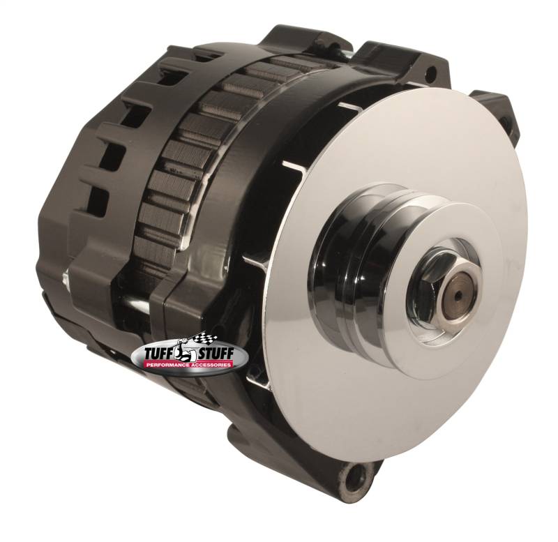 All Tuff Stuff alternators are hand built in Cleveland, Ohio and are tested to meet or exceed OEM specifications. All Tuff Stuff alternators are made from 100% new components and carry a one year limited warranty. Tuff Stuff has alternator applications for virtually all muscle cars, hot rods, customs and light trucks in just about every finish imaginable. Available in chrome plated, polished aluminum, powder coated and plain as cast finishes. All alternators are for 12 volt, negative ground systems, except where noted.