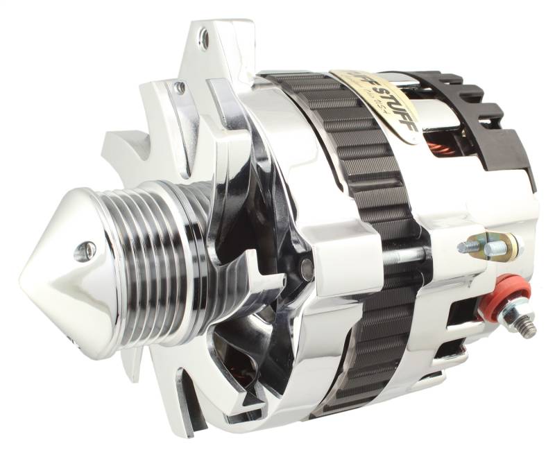 All Tuff Stuff alternators are hand built in Cleveland, Ohio and are tested to meet or exceed OEM specifications. All Tuff Stuff alternators are made from 100% new components and carry a one year limited warranty. Tuff Stuff has alternator applications for virtually all muscle cars, hot rods, customs and light trucks in just about every finish imaginable. Available in chrome plated, polished aluminum, powder coated and plain as cast finishes. All alternators are for 12 volt, negative ground systems, except where noted.