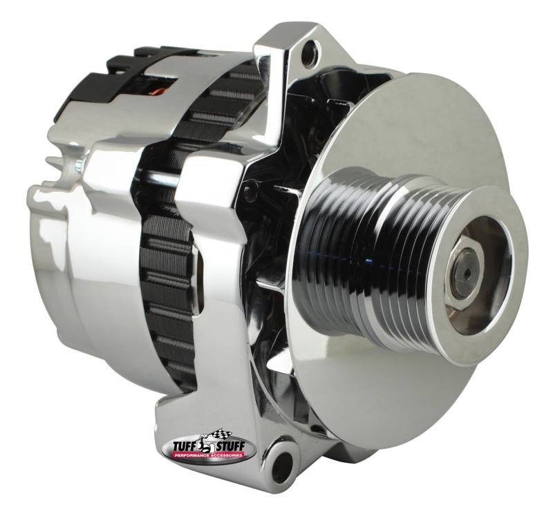 All Tuff Stuff alternators are hand built in Cleveland, Ohio and are tested to meet or exceed OEM specifications. All Tuff Stuff alternators are made from 100% new components and carry a one year limited warranty. Tuff Stuff has alternator applications for virtually all muscle cars, hot rods, customs and light trucks in just about every finish imaginable. Available in chrome plated, polished aluminum, powder coated and plain as cast finishes. All alternators are for 12 volt, negative ground systems, except where noted.