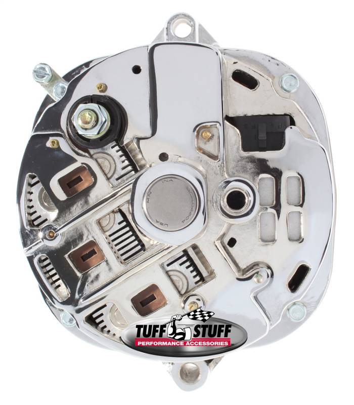 All Tuff Stuff alternators are hand built in Cleveland, Ohio and are tested to meet or exceed OEM specifications. All Tuff Stuff alternators are made from 100% new components and carry a one year limited warranty. Tuff Stuff has alternator applications for virtually all muscle cars, hot rods, customs and light trucks in just about every finish imaginable. Available in chrome plated, polished aluminum, powder coated and plain as cast finishes. All alternators are for 12 volt, negative ground systems, except where noted.