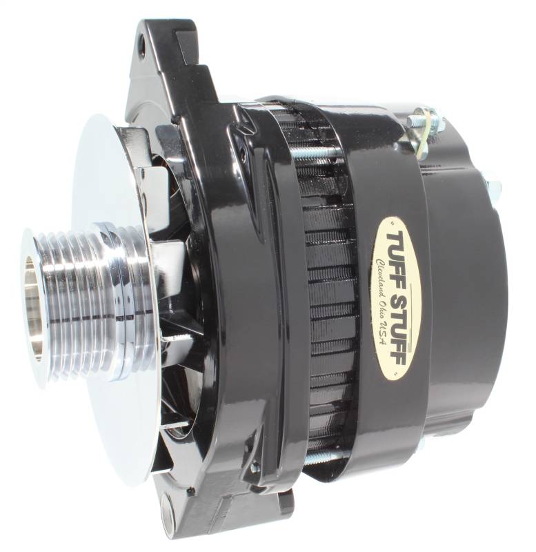 All Tuff Stuff alternators are hand built in Cleveland, Ohio and are tested to meet or exceed OEM specifications. All Tuff Stuff alternators are made from 100% new components and carry a one year limited warranty. Tuff Stuff has alternator applications for virtually all muscle cars, hot rods, customs and light trucks in just about every finish imaginable. Available in chrome plated, polished aluminum, powder coated and plain as cast finishes. All alternators are for 12 volt, negative ground systems, except where noted.