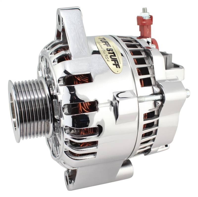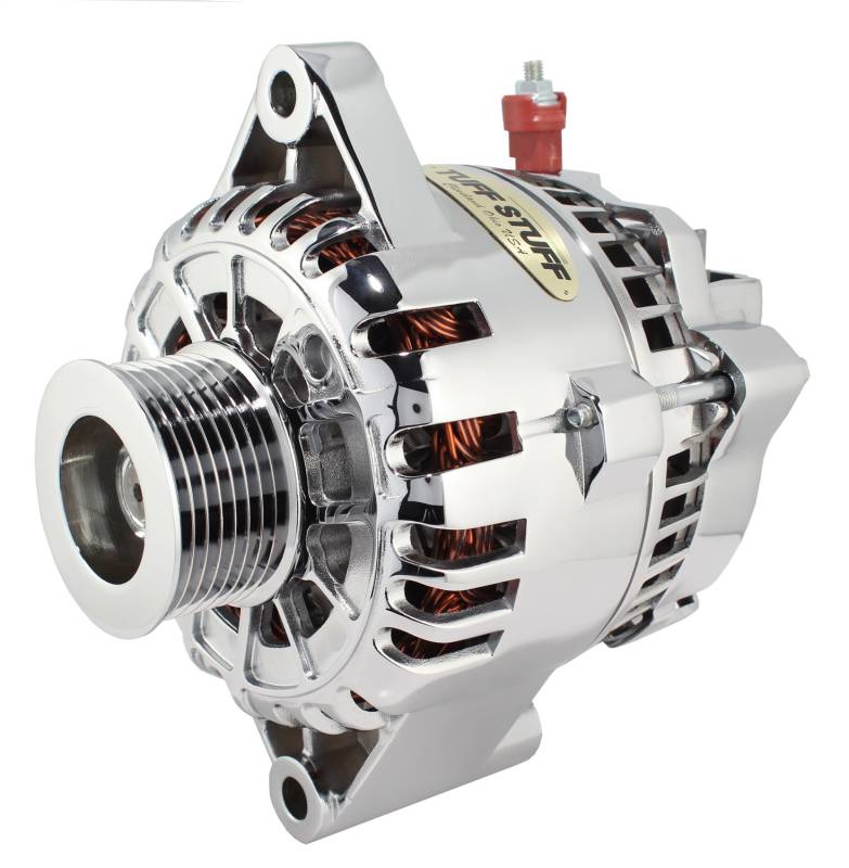 All Tuff Stuff alternators are hand built in Cleveland, Ohio and are tested to meet or exceed OEM specifications. All Tuff Stuff alternators are made from 100% new components and carry a one year limited warranty. Tuff Stuff has alternator applications for virtually all muscle cars, hot rods, customs and light trucks in just about every finish imaginable. Available in chrome plated, polished aluminum, powder coated and plain as cast finishes. All alternators are for 12 volt, negative ground systems, except where noted.