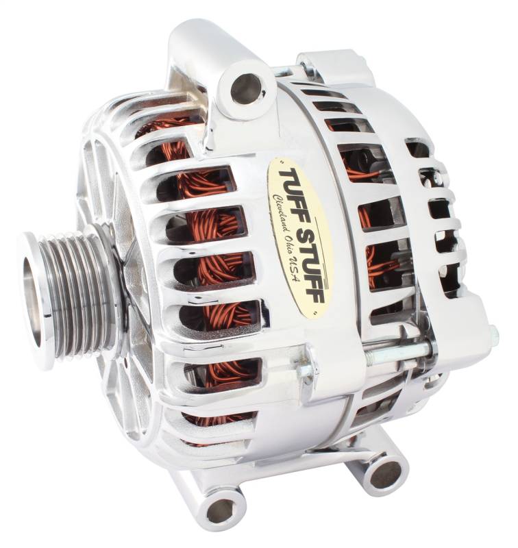 All Tuff Stuff alternators are hand built in Cleveland, Ohio and are tested to meet or exceed OEM specifications. All Tuff Stuff alternators are made from 100% new components and carry a one year limited warranty. Tuff Stuff has alternator applications for virtually all muscle cars, hot rods, customs and light trucks in just about every finish imaginable. Available in chrome plated, polished aluminum, powder coated and plain as cast finishes. All alternators are for 12 volt, negative ground systems, except where noted.