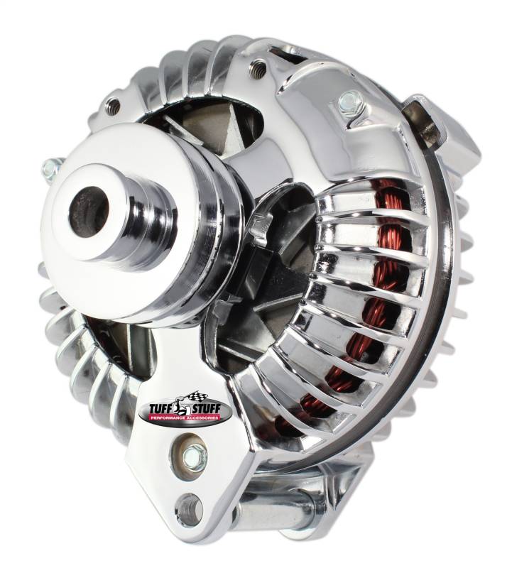 All Tuff Stuff alternators are hand built in Cleveland, Ohio and are tested to meet or exceed OEM specifications. All Tuff Stuff alternators are made from 100% new components and carry a one year limited warranty. Tuff Stuff has alternator applications for virtually all muscle cars, hot rods, customs and light trucks in just about every finish imaginable. Available in chrome plated, polished aluminum, powder coated and plain as cast finishes. All alternators are for 12 volt, negative ground systems, except where noted.