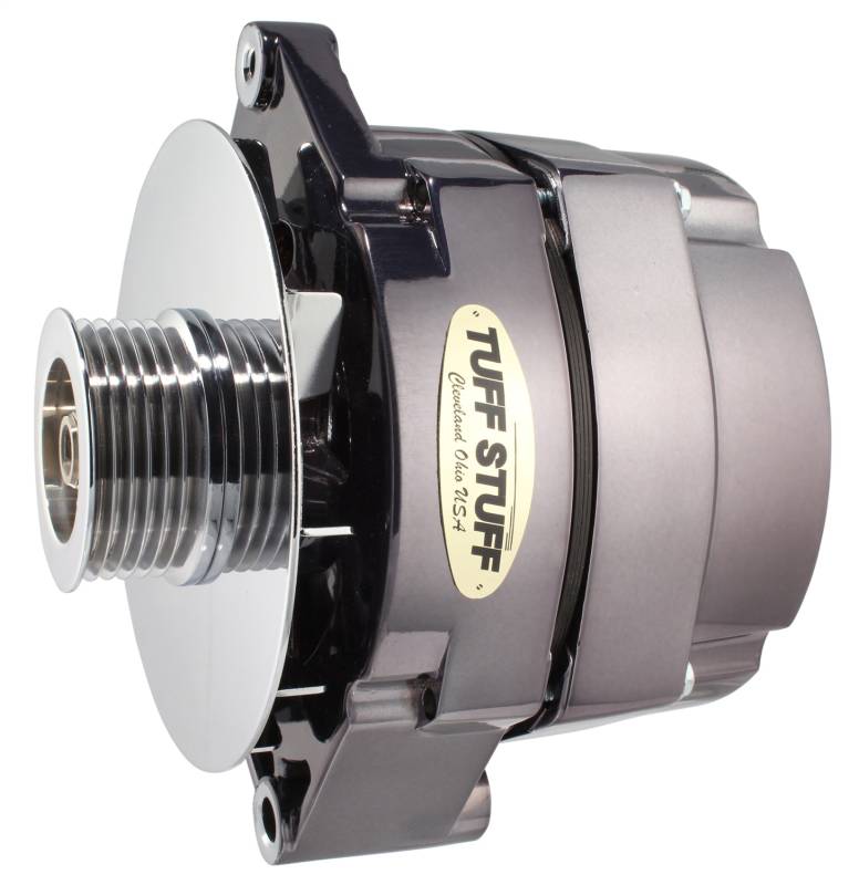 All Tuff Stuff alternators are hand built in Cleveland, Ohio and are tested to meet or exceed OEM specifications. All Tuff Stuff alternators are made from 100% new components and carry a one year limited warranty. Tuff Stuff has alternator applications for virtually all muscle cars, hot rods, customs and light trucks in just about every finish imaginable. Available in chrome plated, polished aluminum, powder coated and plain as cast finishes. All alternators are for 12 volt, negative ground systems, except where noted.