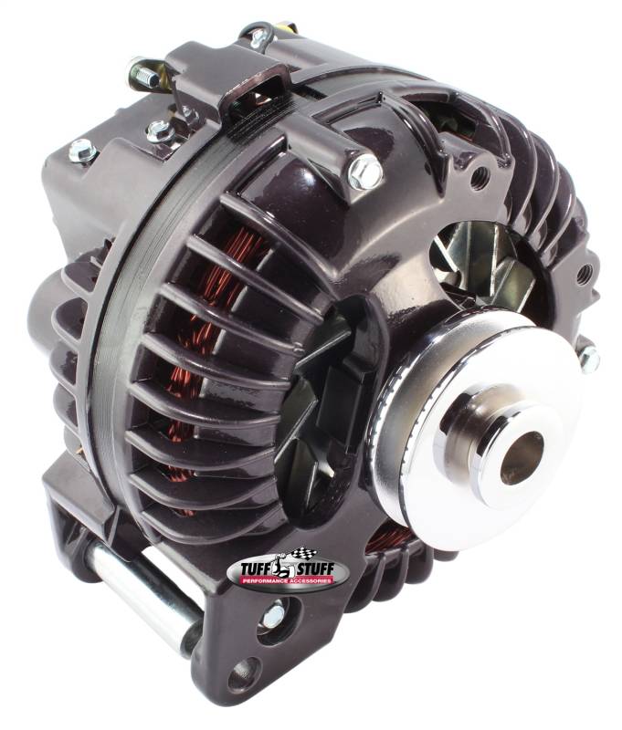 All Tuff Stuff alternators are hand built in Cleveland, Ohio and are tested to meet or exceed OEM specifications. All Tuff Stuff alternators are made from 100% new components and carry a one year limited warranty. Tuff Stuff has alternator applications for virtually all muscle cars, hot rods, customs and light trucks in just about every finish imaginable. Available in chrome plated, polished aluminum, powder coated and plain as cast finishes. All alternators are for 12 volt, negative ground systems, except where noted.