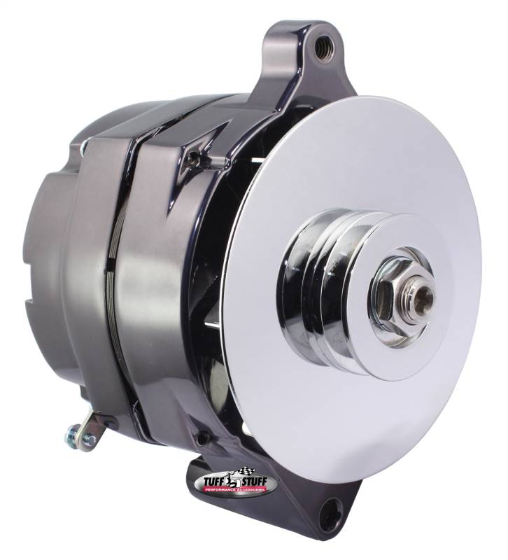 All Tuff Stuff alternators are hand built in Cleveland, Ohio and are tested to meet or exceed OEM specifications. All Tuff Stuff alternators are made from 100% new components and carry a one year limited warranty. Tuff Stuff has alternator applications for virtually all muscle cars, hot rods, customs and light trucks in just about every finish imaginable. Available in chrome plated, polished aluminum, powder coated and plain as cast finishes. All alternators are for 12 volt, negative ground systems, except where noted.