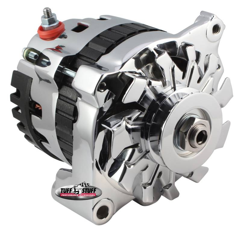 All Tuff Stuff alternators are hand built in Cleveland, Ohio and are tested to meet or exceed OEM specifications. All Tuff Stuff alternators are made from 100% new components and carry a one year limited warranty. Tuff Stuff has alternator applications for virtually all muscle cars, hot rods, customs and light trucks in just about every finish imaginable. Available in chrome plated, polished aluminum, powder coated and plain as cast finishes. All alternators are for 12 volt, negative ground systems, except where noted.