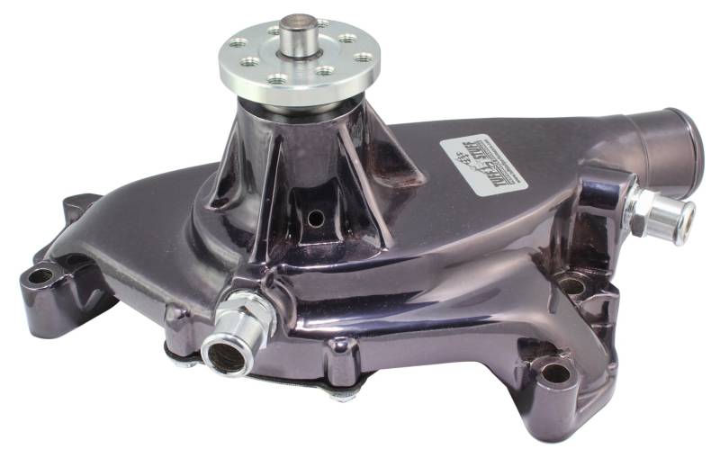 Tuff Stuff water pumps are hand made from premium quality new components - not remanufactured and are quality built in the USA. Precision-made ball/roller bearings and spin-balanced fan hub sustain higher RPMs. Our SuperCool option includes a custom water impeller that flows 30% more coolant to reduce water temperature by up to 20 degrees. Available in chrome plated, polished aluminum, powder coated or as cast finishes.
