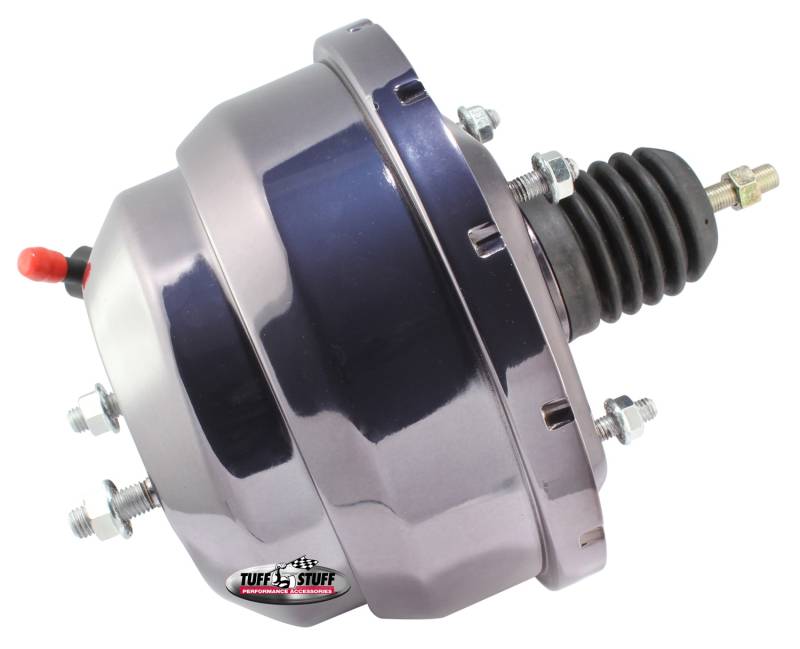Power Brake Booster Universal 8 in. Dual Diaphragm Incl. 3/8 in.-16 Mtg. Studs And Nuts Fits Hot Rods/Customs/Muscle Cars Black Chrome 2223NA7