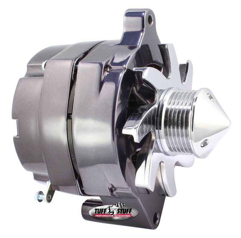 All Tuff Stuff alternators are hand built in Cleveland, Ohio and are tested to meet or exceed OEM specifications. All Tuff Stuff alternators are made from 100% new components and carry a one year limited warranty. Tuff Stuff has alternator applications for virtually all muscle cars, hot rods, customs and light trucks in just about every finish imaginable. Available in chrome plated, polished aluminum, powder coated and plain as cast finishes. All alternators are for 12 volt, negative ground systems, except where noted.