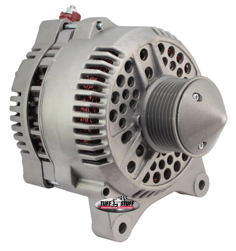 All Tuff Stuff alternators are hand built in Cleveland, Ohio and are tested to meet or exceed OEM specifications. All Tuff Stuff alternators are made from 100% new components and carry a one year limited warranty. Tuff Stuff has alternator applications for virtually all muscle cars, hot rods, customs and light trucks in just about every finish imaginable. Available in chrome plated, polished aluminum, powder coated and plain as cast finishes. All alternators are for 12 volt, negative ground systems, except where noted.
