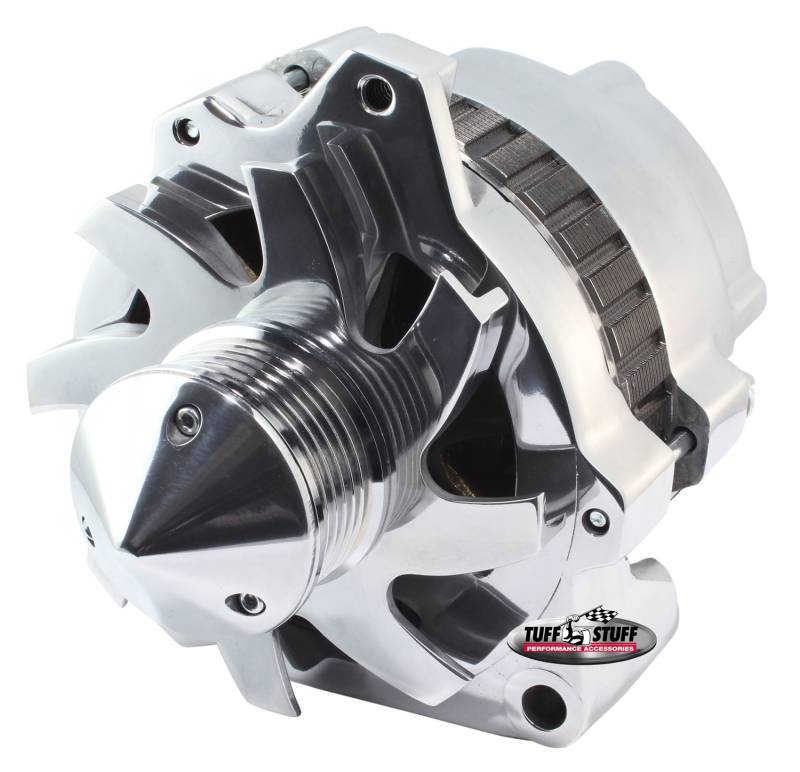 All Tuff Stuff alternators are hand built in Cleveland, Ohio and are tested to meet or exceed OEM specifications. All Tuff Stuff alternators are made from 100% new components and carry a one year limited warranty. Tuff Stuff has alternator applications for virtually all muscle cars, hot rods, customs and light trucks in just about every finish imaginable. Available in chrome plated, polished aluminum, powder coated and plain as cast finishes. All alternators are for 12 volt, negative ground systems, except where noted.