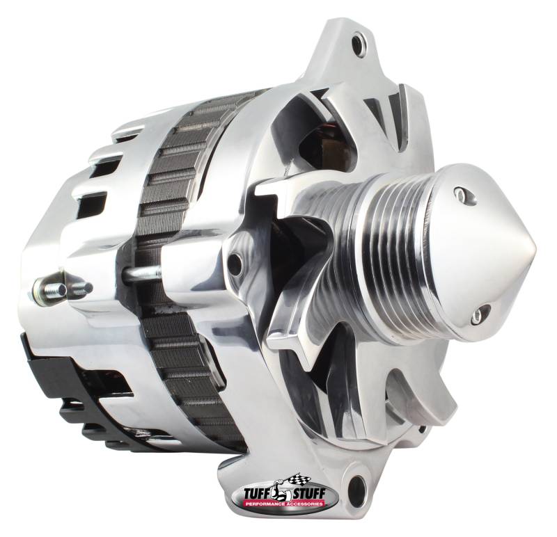 All Tuff Stuff alternators are hand built in Cleveland, Ohio and are tested to meet or exceed OEM specifications. All Tuff Stuff alternators are made from 100% new components and carry a one year limited warranty. Tuff Stuff has alternator applications for virtually all muscle cars, hot rods, customs and light trucks in just about every finish imaginable. Available in chrome plated, polished aluminum, powder coated and plain as cast finishes. All alternators are for 12 volt, negative ground systems, except where noted.