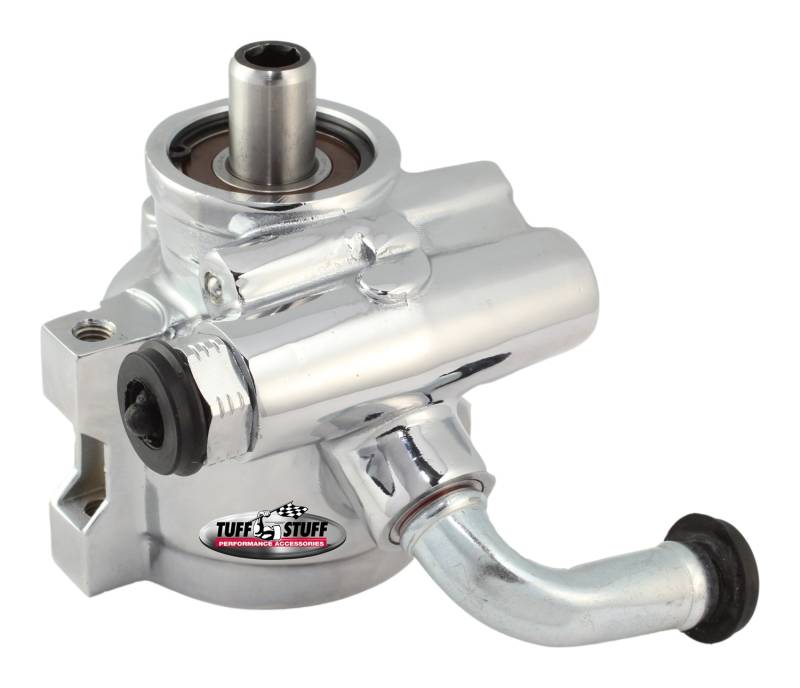 Type II Alum. Power Steering Pump w/90 Deg. Return Tube Threaded Hole Mounting Bottom Pressure Port 1200 PSI Chrome 6170ALD-5