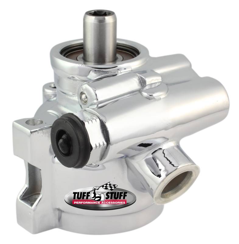 Type II compact size power steering pump is ideal for tight installations. For use with factory or remote reservoir tank depending upon part number. Pumps have a 1200 PSI rating, 3GPM flow. Optional valve PN[5552] converts pump to 850 PSI rating. Perfect for street rods and custom vehicles with limited engine space. Available in chrome plated, polished aluminum, various colors and plain, as cast finishes.