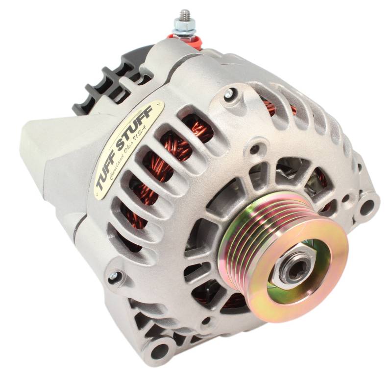 Tuff Stuff high performance alternators are exactly what every quality build-up needs. Most Tuff Stuff alternators are universal 1-wire hookup or can be used with your original wire harness too. These alternators crank out the most amperage at idle to power your added electrical accessories such as electric fans, water pumps, fuel pumps and stereos. All units are hand built with the best bearings, diodes and copper windings available. The chrome plating and powder coating is applied in Tuff Stuffs Cleveland, Ohio factories. Start to Finish Tuff Stuff makes you a winner.