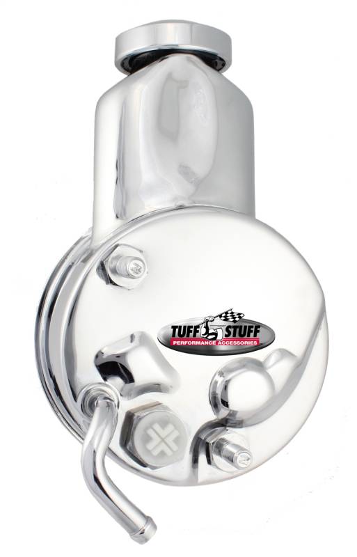 This GM style Saginaw pump features all new components including reservoir and pump assembly. It also includes a billet chrome cap, a new dipstick and hardware. Pumps are 1200 PSI rated @ 2.9-3.1 GPM to work with most gearbox systems. An optional 850 PSI valve is available for Mustang II rack and pinion systems.