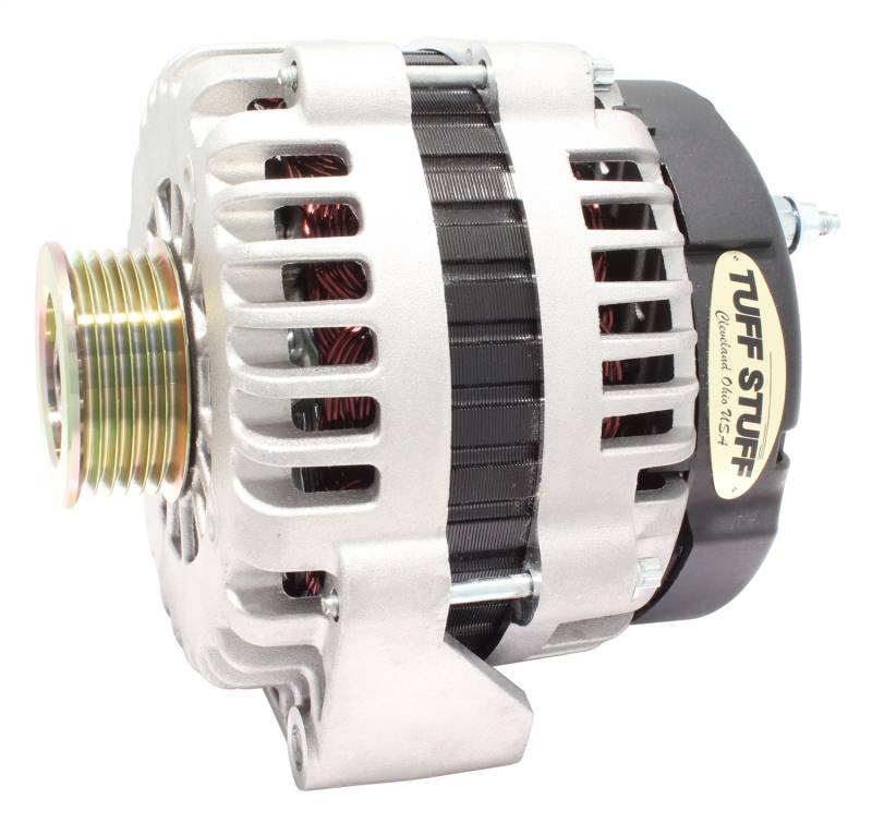 All Tuff Stuff alternators are hand built in Cleveland, Ohio and are tested to meet or exceed OEM specifications. All Tuff Stuff alternators are made from 100% new components and carry a one year limited warranty. Tuff Stuff has alternator applications for virtually all muscle cars, hot rods, customs and light trucks in just about every finish imaginable. Available in chrome plated, polished aluminum, powder coated and plain as cast finishes. All alternators are for 12 volt, negative ground systems, except where noted.