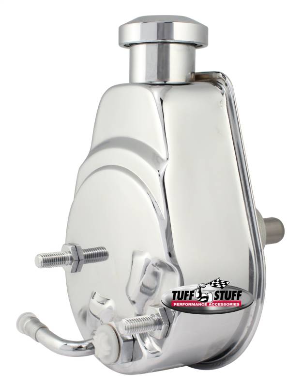 This GM style Saginaw pump features all new components including reservoir and pump assembly. It also includes a billet chrome cap, a new dipstick and hardware. Pumps are 1200 PSI rated @ 2.9-3.1 GPM to work with most gearbox systems. An optional 850 PSI valve is available for Mustang II rack and pinion systems.