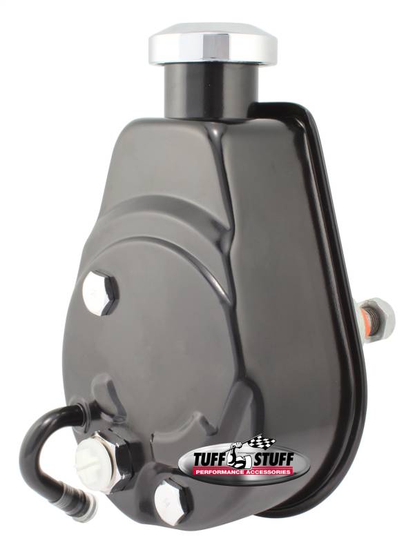 This GM style Saginaw pump features all new components including reservoir and pump assembly. It also includes a billet chrome cap, a new dipstick and hardware. Pumps are 1200 PSI rated @ 2.9-3.1 GPM to work with most gearbox systems. An optional 850 PSI valve is available for Mustang II rack and pinion systems.