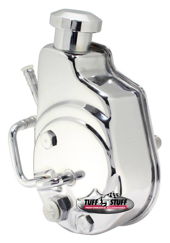 This GM style Saginaw pump features all new components including reservoir and pump assembly. It also includes a billet chrome cap, a new dipstick and hardware. Pumps are 1200 PSI rated @ 2.9-3.1 GPM to work with most gearbox systems. An optional 850 PSI valve is available for Mustang II rack and pinion systems.